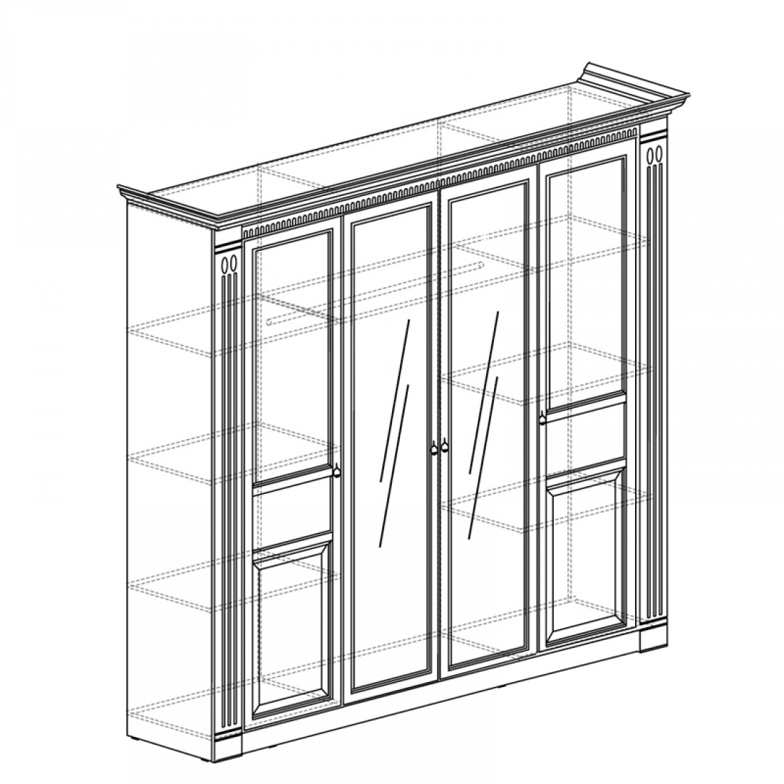 Шкаф четырехдверный с зеркалами Лючия 203 светлый