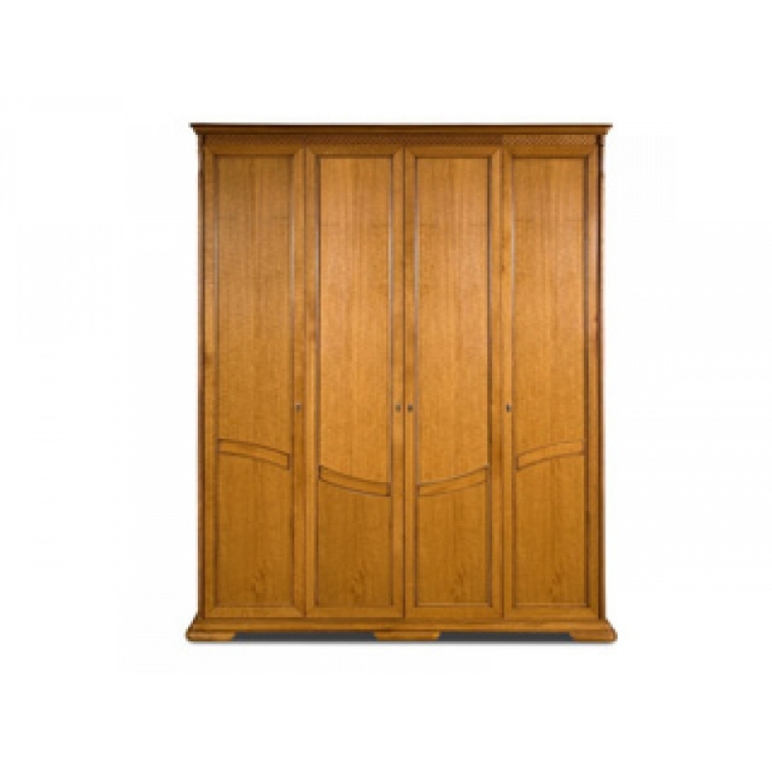 Четырехдверный шкаф Лика экономно использует площадь помещения, предоставляя достаточно пространства для хранения одежды, белья и других вещей. Выполнен в цвете "Медовый дуб с золотой патиной".