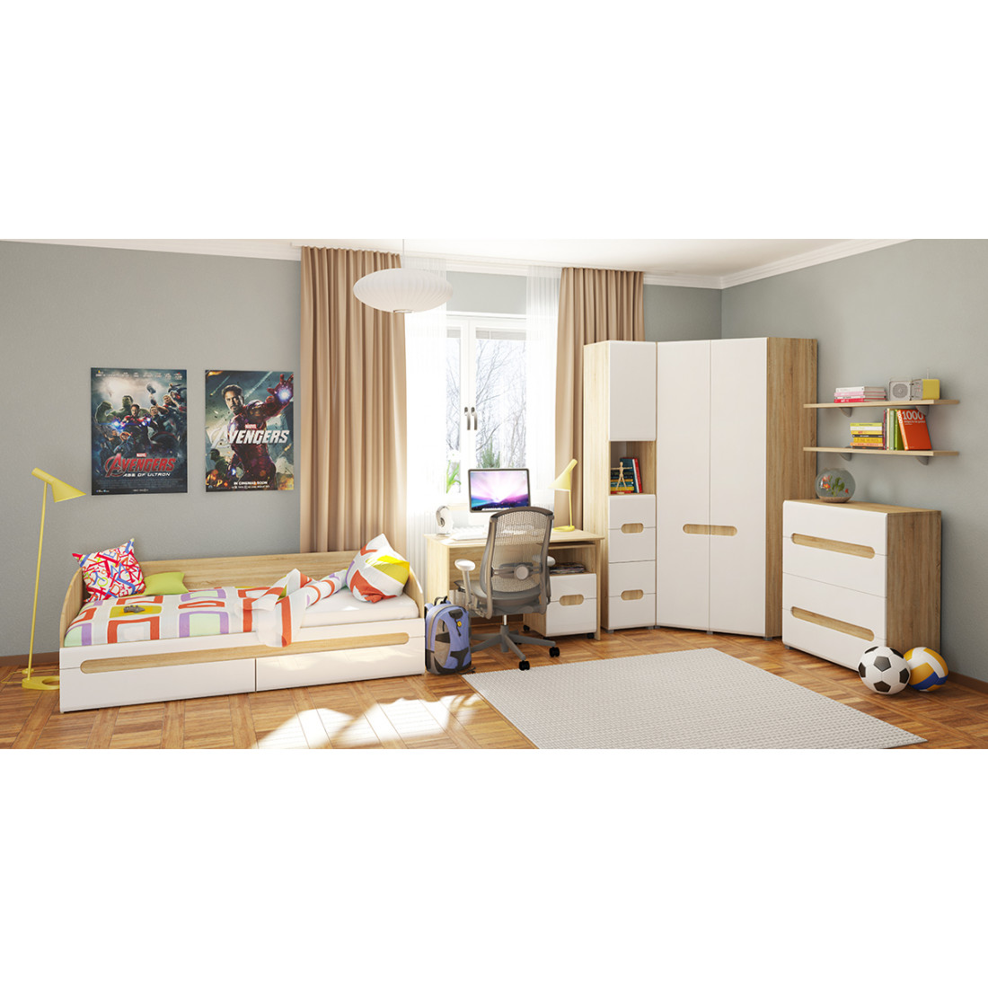 Детская-молодежная спальня Леонардо по стильному исполнению соответствует последним тенденциям интерьерной моды.